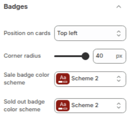 Configure "Sale" and "Sold Out" badges on product cards.