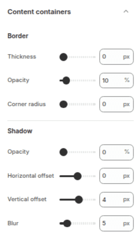 Styling for text boxes and content containers (e.g., Image with Text overlays, Banner text boxes).