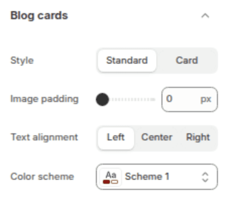 Styling for blog post cards on the Blog page.