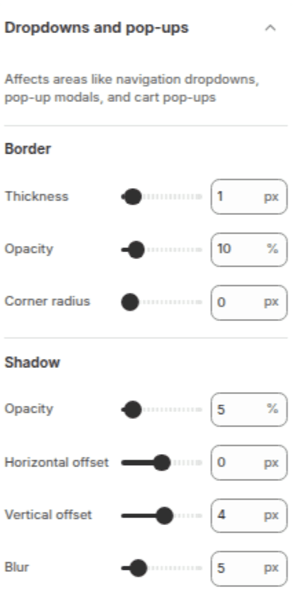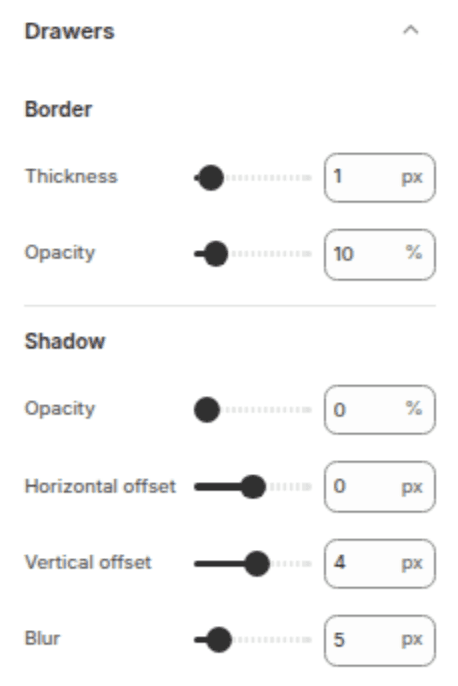 Style slide-out drawers (cart drawer, mobile menu, filter drawer).