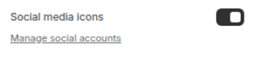 When enabled, displays social media icon links in the footer's upper content area. Icons are only shown for social platforms that have a URL configured in Theme Settings > Social media. If no social URLs are configured, no icons appear even when this setting is enabled.