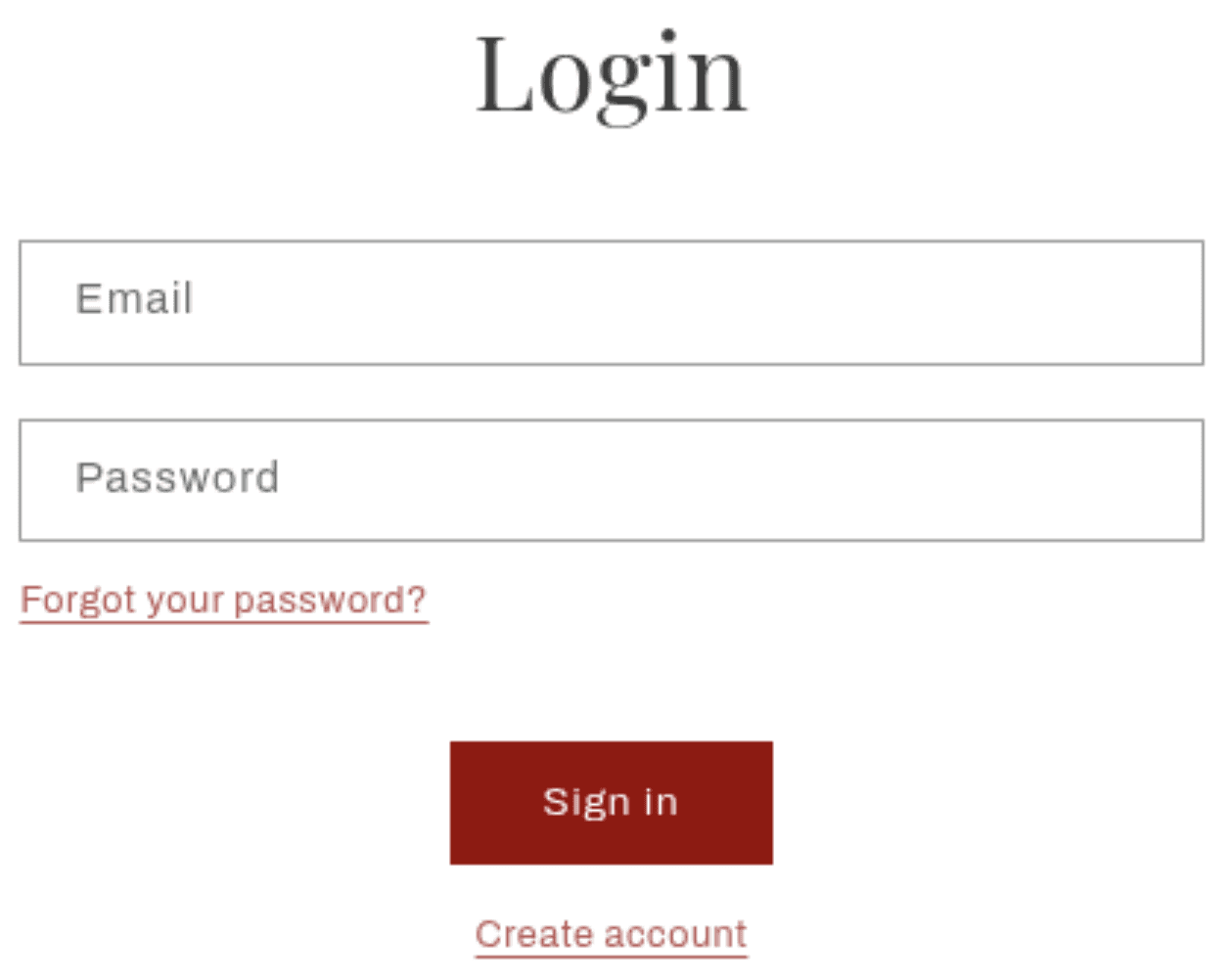 Customer accounts required: This section only appears to customers when customer accounts are enabled in your store. If accounts are disabled, the login page will not be accessible.