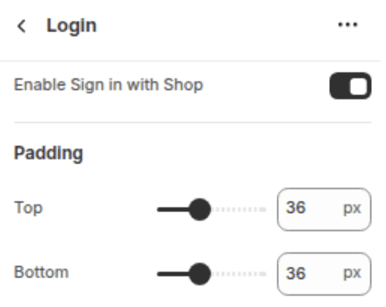 Shop login button: The "Sign in with Shop" button only renders if your store has the Shop classic customer accounts feature enabled. If it does not appear after enabling the setting, check your Shopify Admin → Settings → Customer accounts to confirm the account type in use.