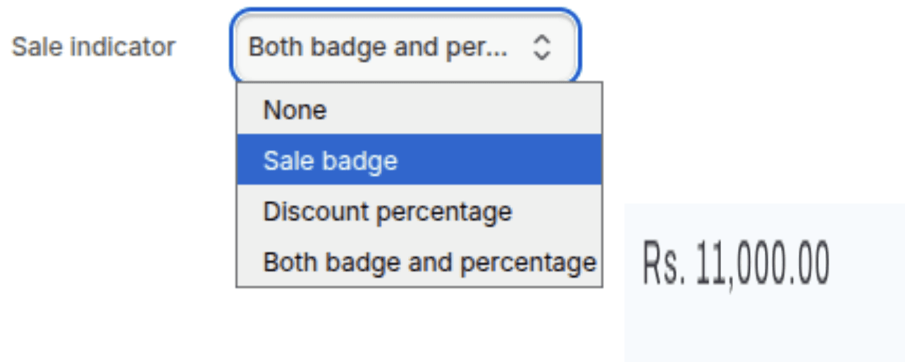 How to show savings: None, Badge ("Sale"), Percentage ("Save 20%"), or Both.