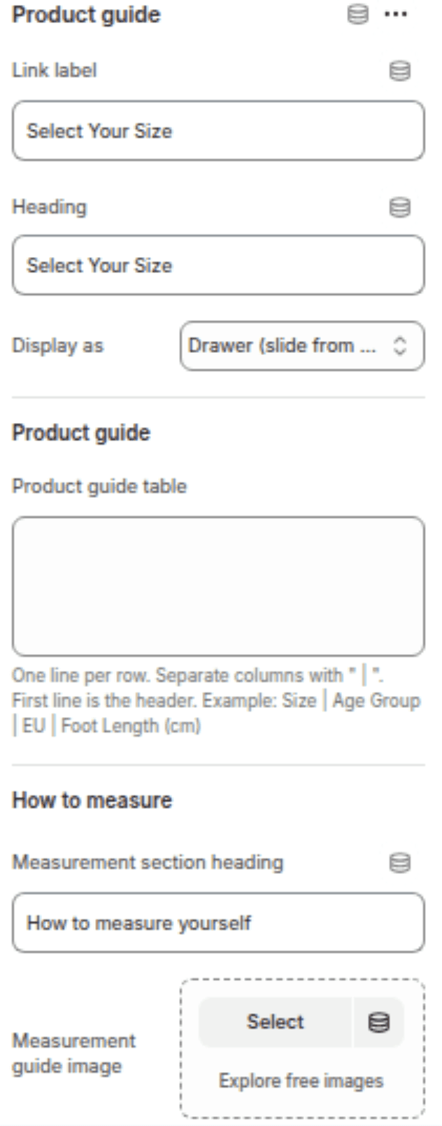 Text link to open the guide (e.g., "Size Guide").