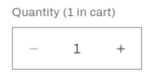 A number input with plus/minus buttons for adjusting quantity. Automatically shows volume pricing tiers, quantity rules (min, max, multiples), and in-cart quantities.
