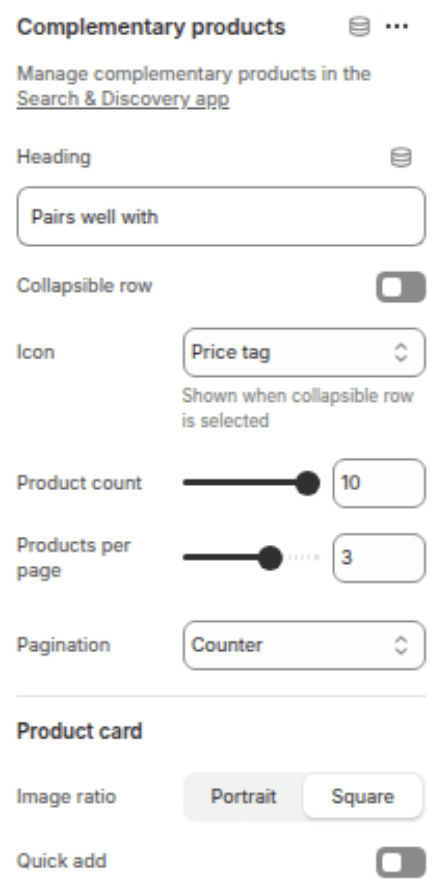 A slider displaying recommended products (configured via Shopify's Search & Discovery app).
