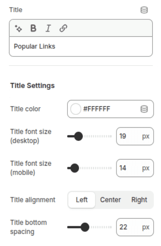 Typography Control: Fine-tune font sizes and colors for both the heading and links to match your footer design.