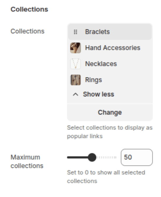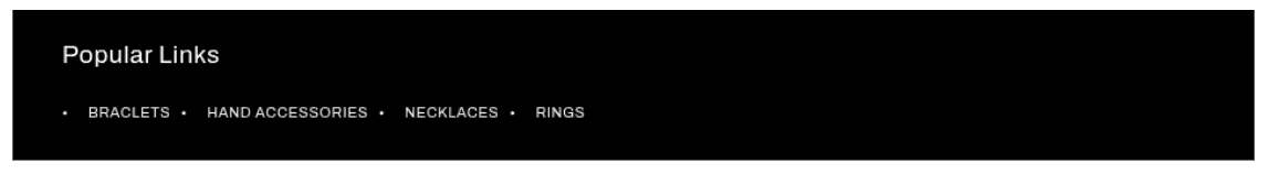 The Popular Links section is designed to display a text-based list of collection links, typically placed in the footer area. It serves as an excellent SEO tool by creating a network of internal links to your most important categories, and helps customers find what they're looking for without navigating complex menus.