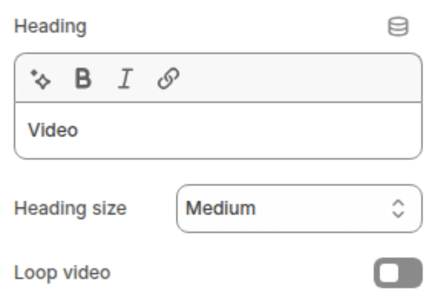 When enabled, the video automatically restarts from the beginning when it ends. Applies to both Shopify-hosted videos and YouTube/Vimeo embeds.