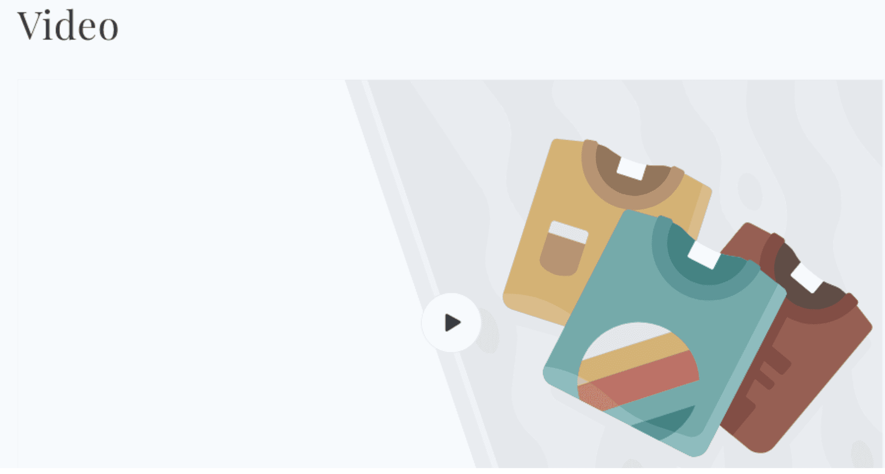 The Video section embeds a single video on any page, displayed behind a clickable thumbnail poster with a play button. The video only loads when a customer clicks play - this deferred loading approach keeps page performance fast regardless of the video's file size or streaming source. The section supports two video sources: a Shopify-hosted video uploaded directly to the store, or an external YouTube or Vimeo URL.